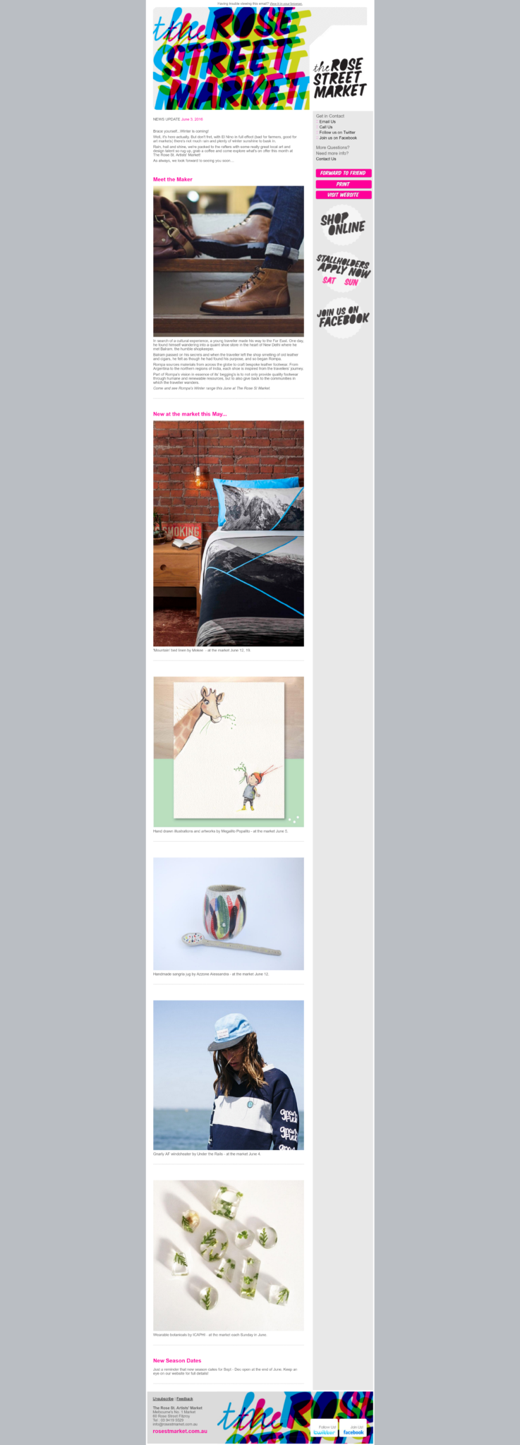The Rose St. Artists’ Market is where those in-the-know find Melbourne’s best art and design talent. Located in the heart of Fitzroy, this market features a huge array of art, photography, fashion, jewellery, homewares and accessories.